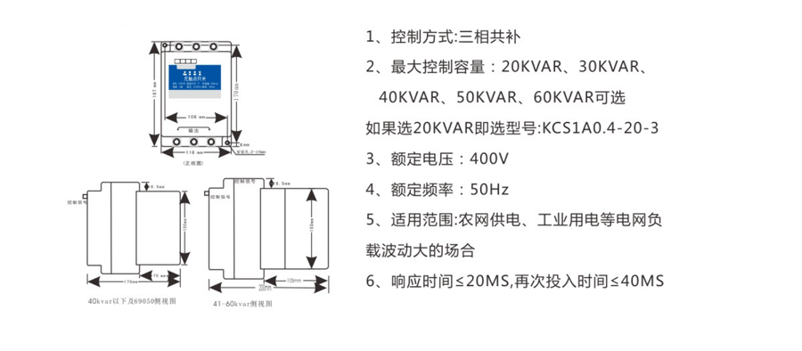 重量:共补50以下近似2500g,分补15*3以下近似3000g,60KVAR近似3500g。